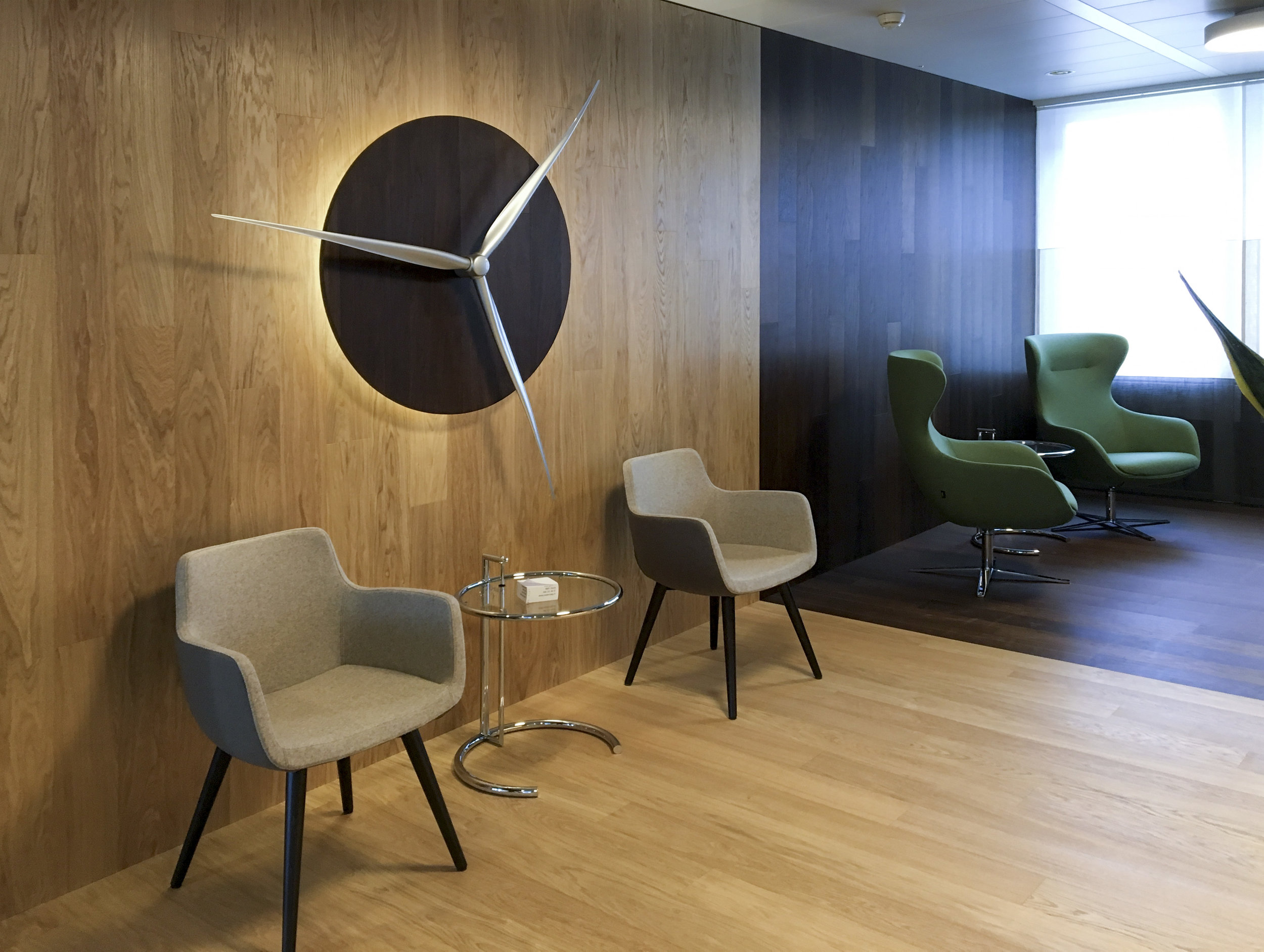 Für einen Auftraggeber aus der Renewable-Energy-Branche sollte im bestehenden Bürogebäude eine Lounge für die Mitarbeiter und ein Empfangsbereich für Besucher realisiert werden.